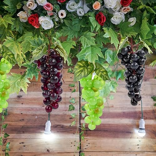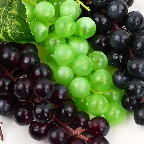 volumoon 3 Pièces Raisins Artificiels, Grappes Raisins Artificiels, Faux Faisceaux de Raisin, Raisins DéCoratifs, Variés Grappes de Raisins Givrés, Raisins Artificiel Simulés pour la Décoration