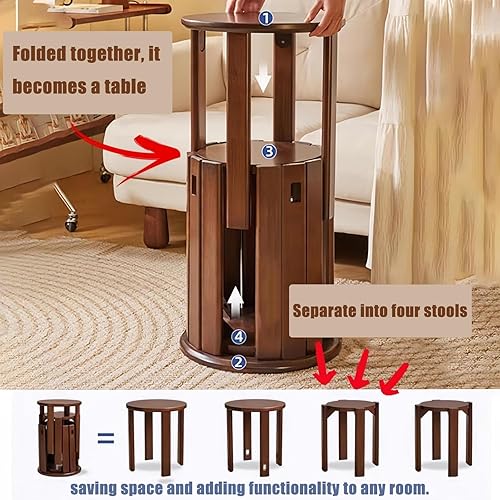 Lot de 4 tabourets empilables en bois massif, multifonctionnels, peuvent être utilisés comme repose-pieds, tables basses, tables d'appoint, tables de chevet, chaises de salle à manger