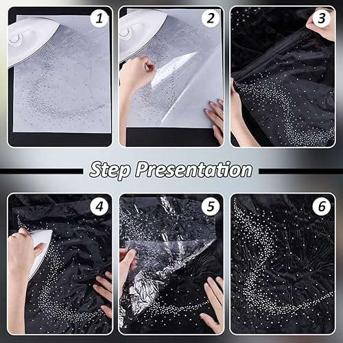 FINGERINSPIRE 6 Feuille de Transferts Thermocollants à Paillettes en Strass à Motif Étoile et Rivière 2Mm 3Mm Patch Rond Plat en Strass Thermofusible pour Vêtements Décoration DIY