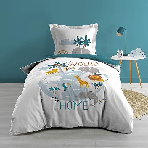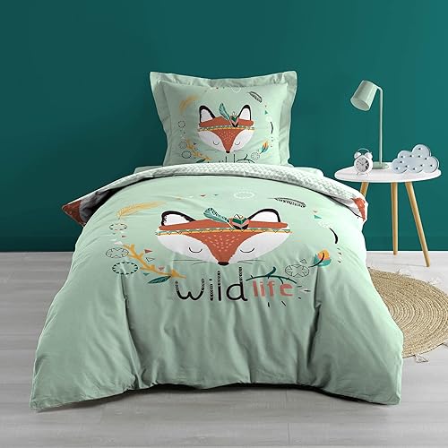 Douceur d'Intérieur, Parure 2 Pièces (140 x 200 cm) Renardeau, 100% Coton