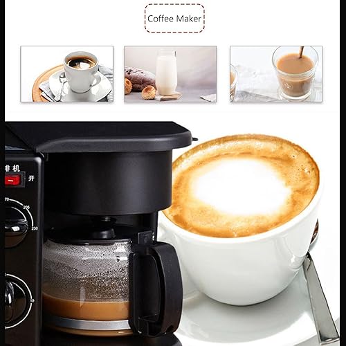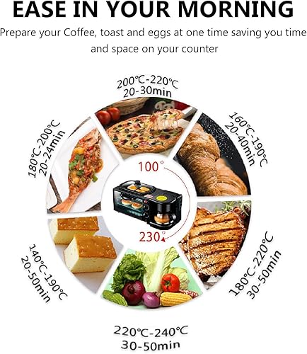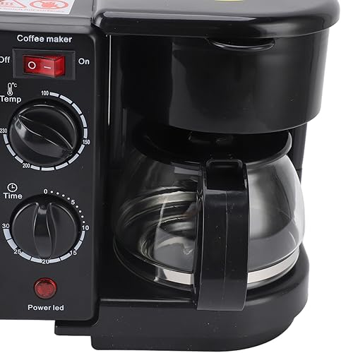 Station de Petit-déjeuner 3 en 1, Four Portable avec Machine à Café, Double Plaque Antiadhésive pour œufs, Viande, Saucisses, Bacon, Crêpes et Sandwichs de Petit-déjeuner, Four Grille-pain 12 L 220 V