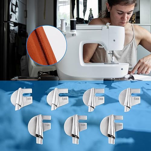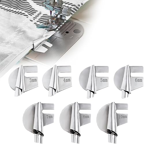 7 Pièces de Pied de Biche Ourlet Roulé, 3-8 mm et 10 mm 7 Styles de Pied-De-Biche à Ourlet Roulé Accessoires de Machine à Coudre Guide de Couture Large et Étroit pour Machine à Coudre