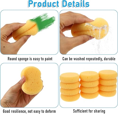 JJUNW Lot de 12 éponges rondes de poterie pour argile de 7,6 cm pour peinture acrylique