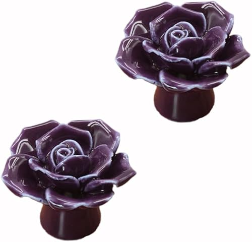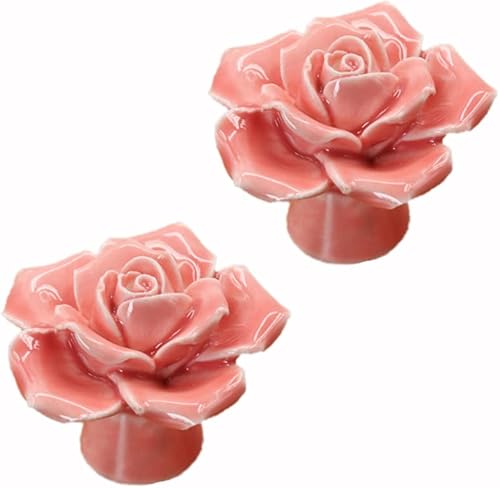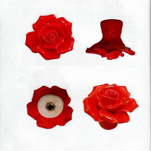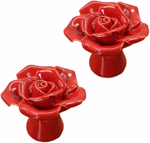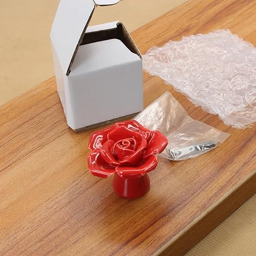 Wambere Lot de 1 poignées en céramique pour tiroir, commode, motif floral, boutons de tiroir, boutons décoratifs pour armoire, armoire, commode, rouge