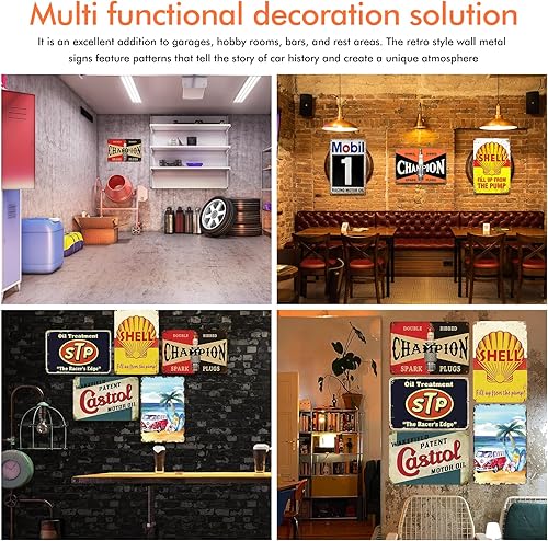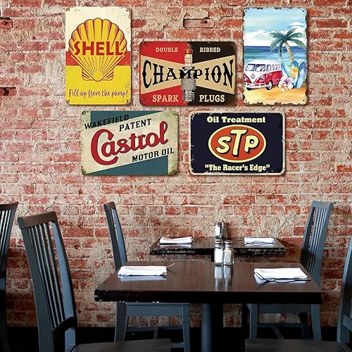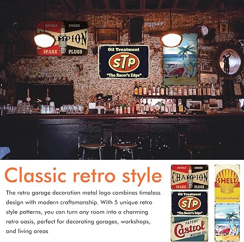 LEKEFETO Lot de 5 plaques en tôle décoratives rétro - 20 x 30 cm - Vintage - Décoration vintage - Plaque en tôle rétro - Pour atelier, garage, bar et salon
