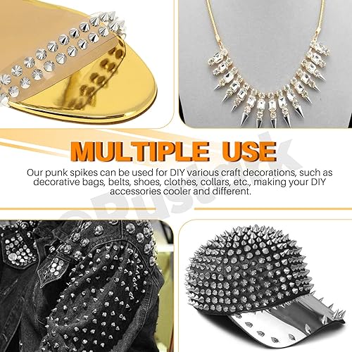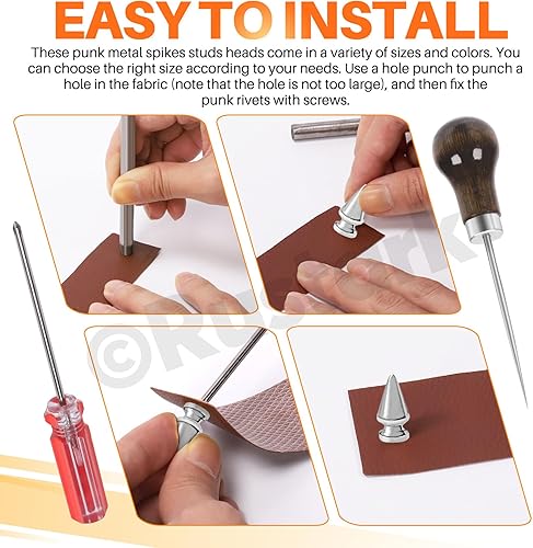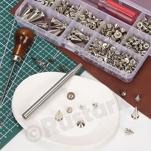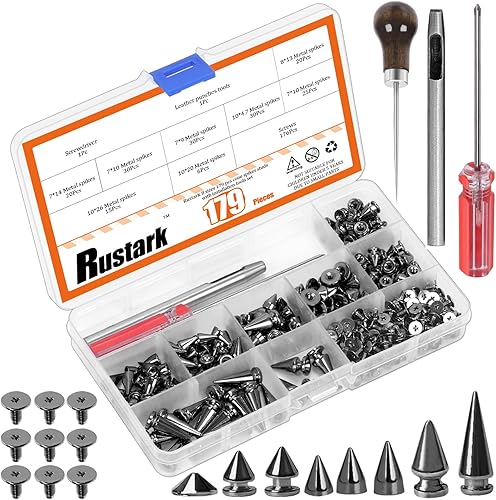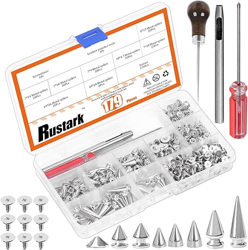 Rustark Lot de 179 rivets punk en métal - 8 tailles - Avec outils - En acier inoxydable - Rivets décoratifs - Pour le bricolage, les vêtements, l'artisanat du cuir