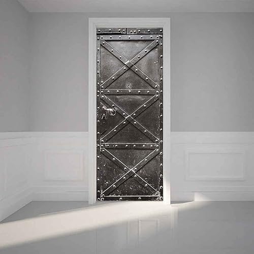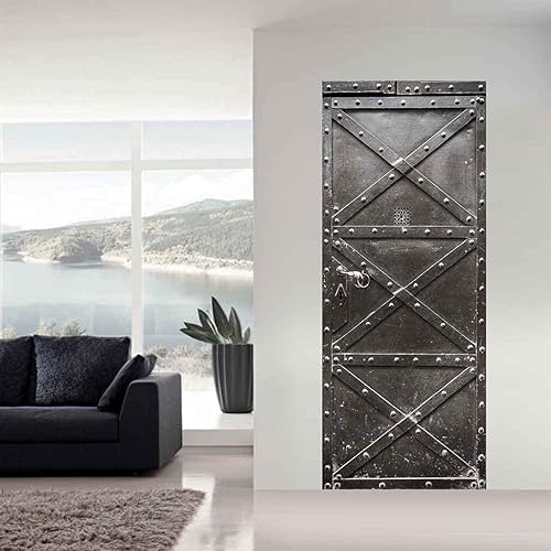 Stickers 3D Porte Poster Portail Ancien En Fer Noir 95 X 215 Cm Papier Peint Porte Trompe L'Oeil Pour Chambre Salon Décoration De La Maison Stickers Muraux Imperméable Stickers Amovibles - Photo De L