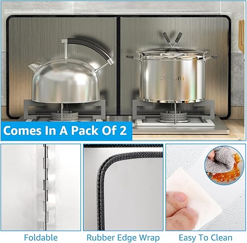 YAYODS Lot de 2 protections anti-éclaboussures de cuisine - 40 x 30 x 30 cm - Pliables - Protection anti-éclaboussures avec revêtement antiadhésif - Plaque anti-éclaboussures pour cuisinière