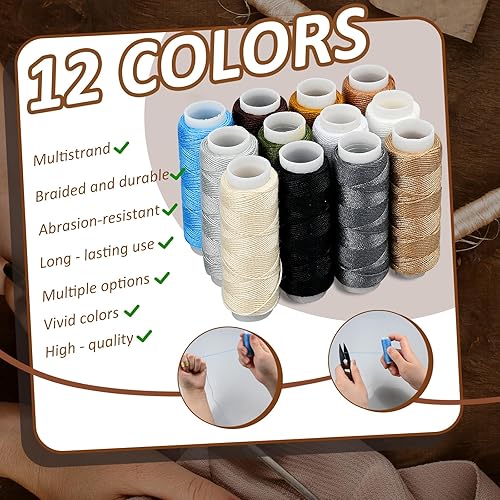 Kit de Couture pour Cuir 48 Pièces, Set Outils Cuir avec Aiguilles, Fil Ciré, Poinçon, Aiguille de Couture pour Réparation Cuir, Accessoires de Couture pour DIY, Chaussures, Sacs, Ceintures