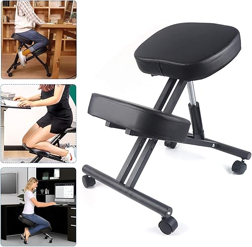 Esyogen Chaise genoux avec roulettes - Ergonomique - Pour ordinateur - Tabouret de santé - Hauteur réglable de 50 à 60 cm - Orthopédique - Pour soutenir vos genoux et tibias