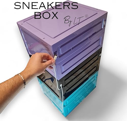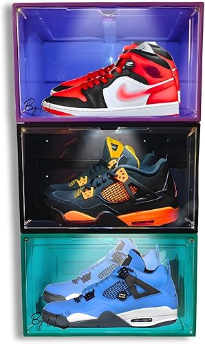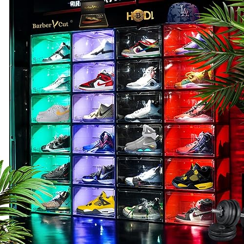 By L.T sneakers box LED rangement chaussure vitrine pour collection basket et figurines meuble chaussures decoration chambre etagere chaussure empilable organisateur pour dressing homme/femme (Noir)