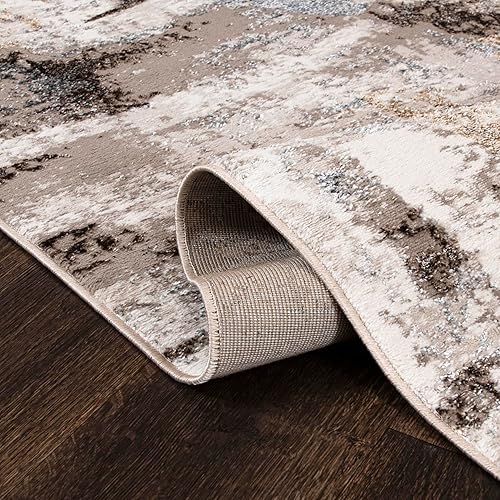 Mazovia Tapis de Passage Beige Moderne Abstrait - Tapis de Passage pour Cuisine, Couloir, Chambre, Vestibule - Tapis à Poils Courts - Certifié ÖKO-TEX - Beige Crème Tapis de Passage - 120 x 150 cm