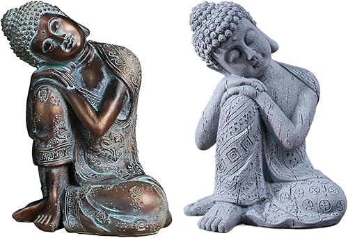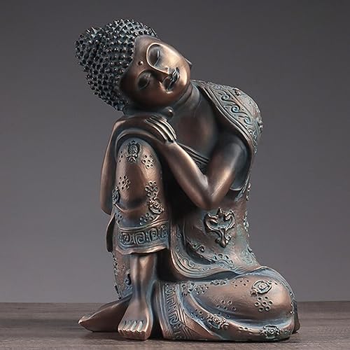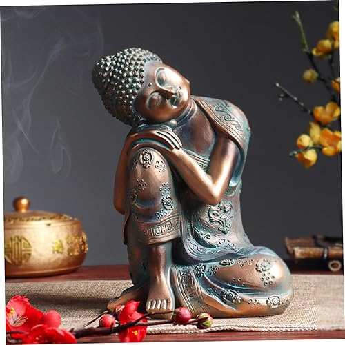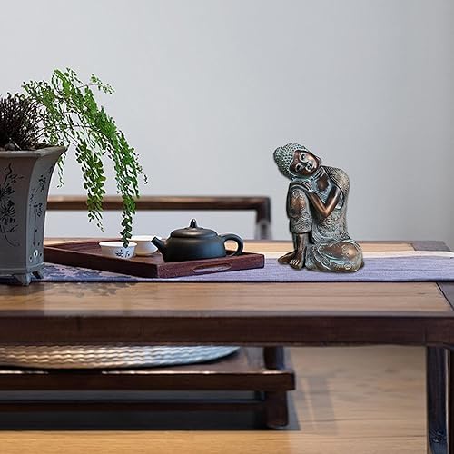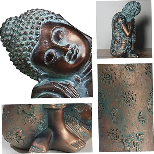 Statue de Bouddha, 24 cm / 9,5 pouces de résine Resin Statues de Bouddha, figurine de Bouddha décorative de bureau, ornement décoratif du jardin zen pour extérieur intérieur (bronze d'imitation)