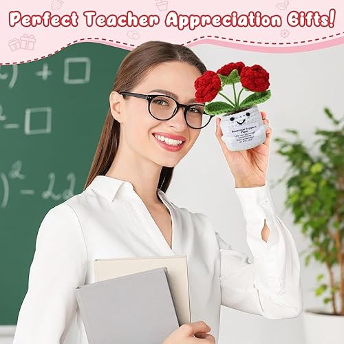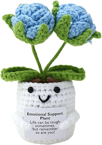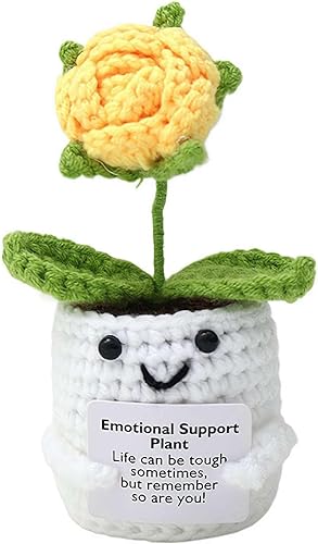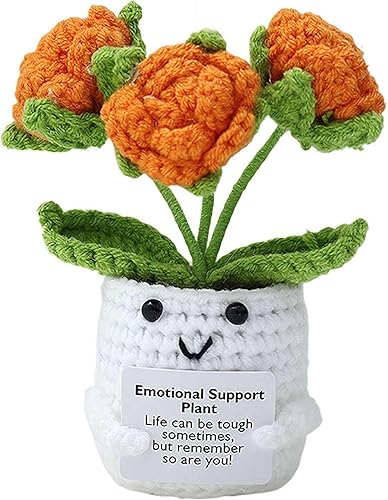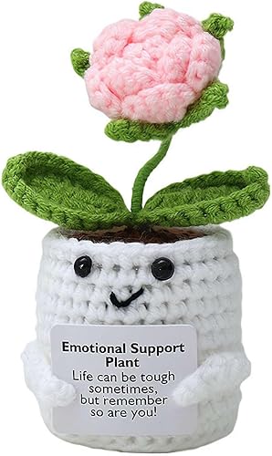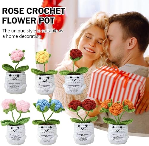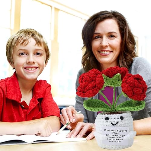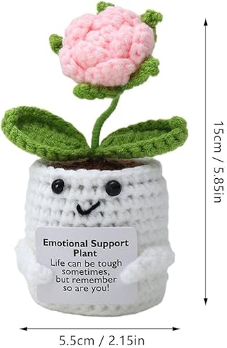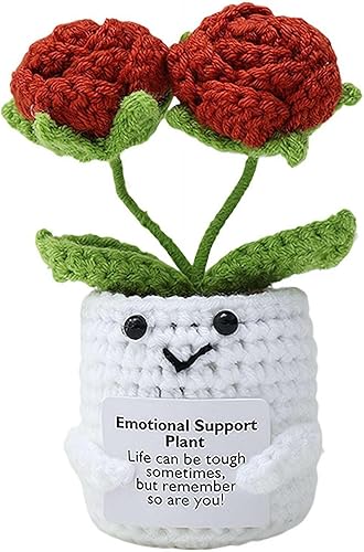 Poupée au crochet de soutien émotionnel – Rose en peluche faite à la main – Plantes tricotées au crochet – Cadeau créatif en tricot – Petite fleur au crochet pour bureau, bibliothèque, chevet