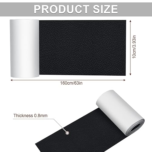AiQInu Patch de Réparation en Cuir 10x160cm Auto-adhésif Noir Pour Rénovation de Canapé, Siège, Vestes, Artisanat