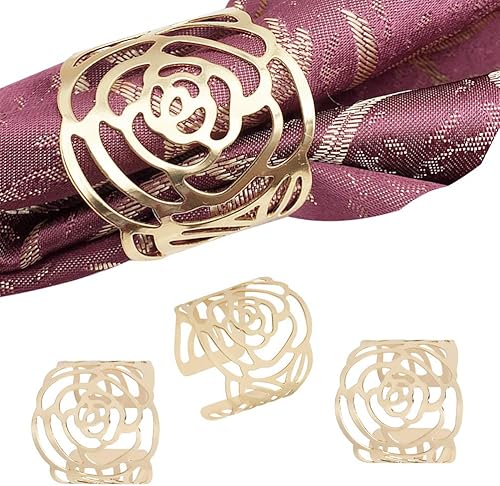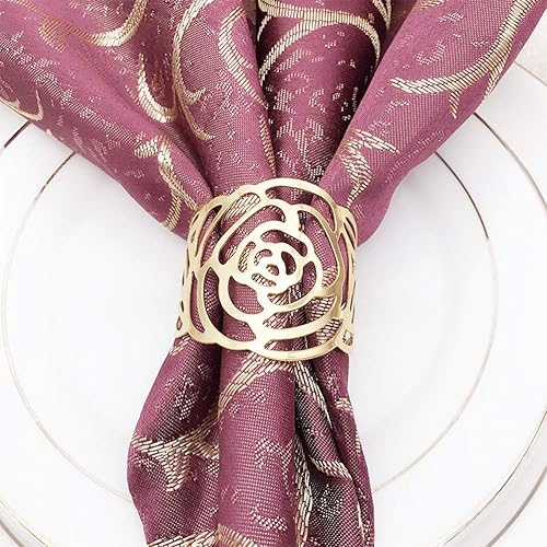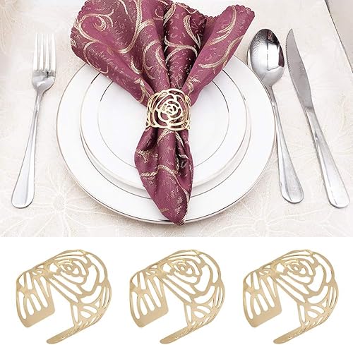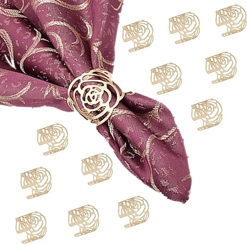 Rond de Serviette Or 12PCS Porte-serviettes de Table Noël Serviette Rond Anneaux de Serviettes de Table Porte-Serviettes en Métal Ajouré Motif Fleur Bague Déco pour Mariage, Banquet, Dîner, Décoration