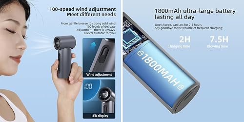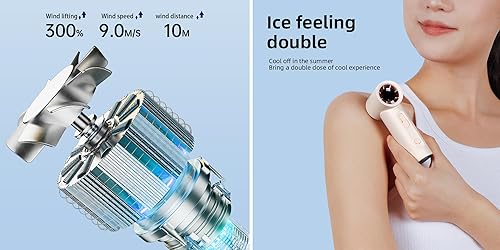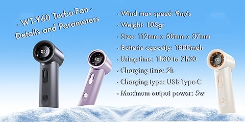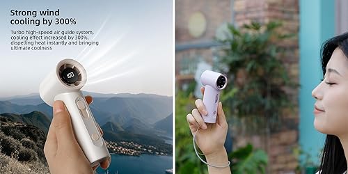Mini Ventilateur turbine de poche rechargeable brushless, Batterie 1800mAh, Vitesse dimable 0-100, 13000tr/mn, Écran LED, Idéal Voyages, Camping, Intérieur et Extérieur, concert, idée cadeau (Crème)