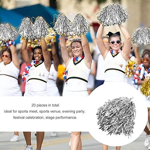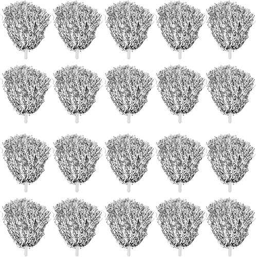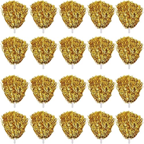 Wisecoco 20 Pcs Cheerleading Pom Poms, 3.3in Métallique Foil Poms, Cheerleader Pompoms Cheer Poms pour Enfants Adultes École Sports Jeux Dance Party(Or)