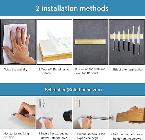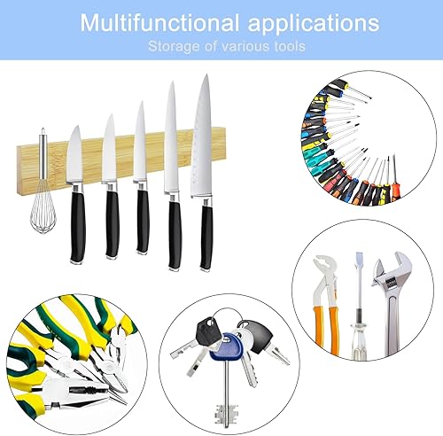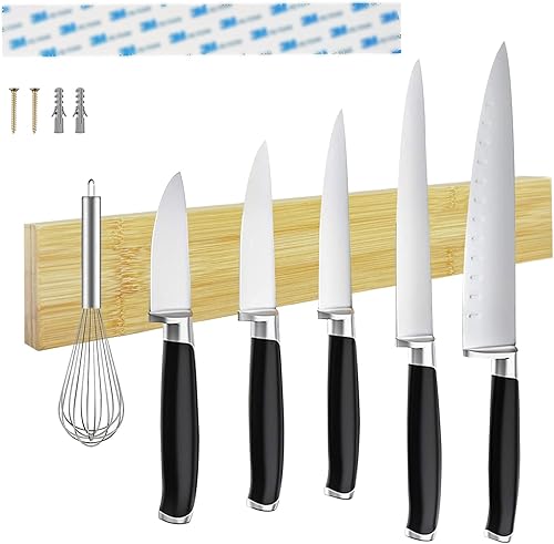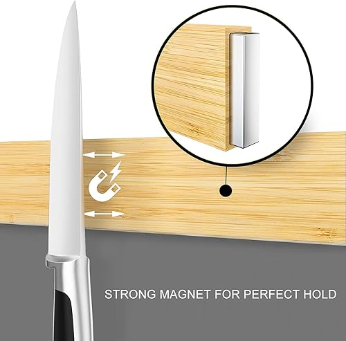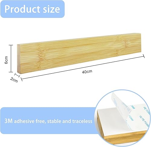 Gentpovth 40cm Porte Couteaux Aimanté en Bambou avec Aimant Puissant, Aimant Couteau Mural Support, Augmenté Antidérapant et peu Encombrant, Cuisine Bien Rangée, pour Les Couteaux, Ustensiles Cuisine
