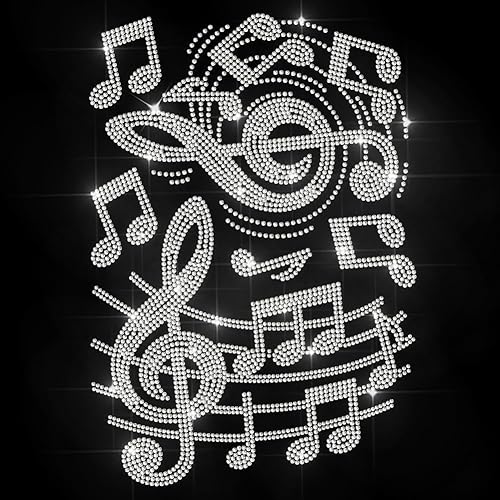 MAYJOYDIY Autocollant Thermocollant en Strass avec Notes de Musique Feuille Musicale Transfert à Chaud Mélodie en Cristal Patch de Transfert Thermique pour T Shirt Chapeau Veste Sac à Vêtements Décor