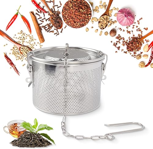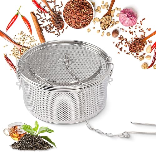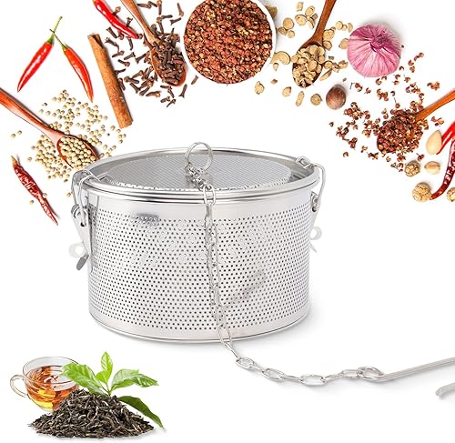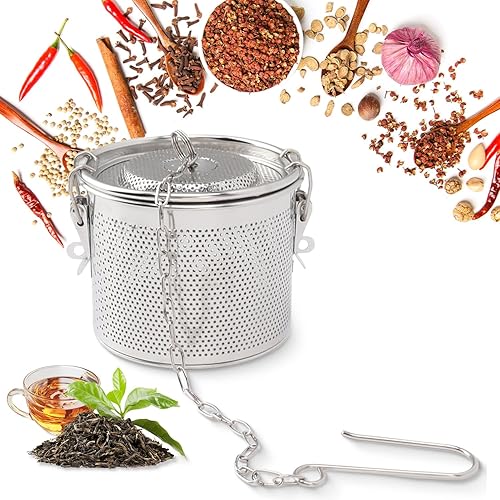 Passoire D'assaisonnement Panier de Séparation D'assaisonnements en Acier Inoxydable avec Chaîne Suspendue, Filtre de Boules de Thé pour Assaisonnement D'épices de Café(20cm)