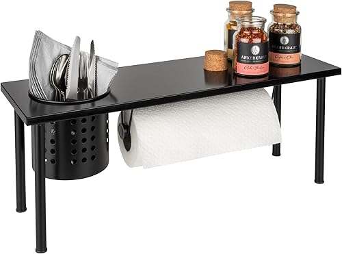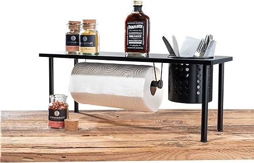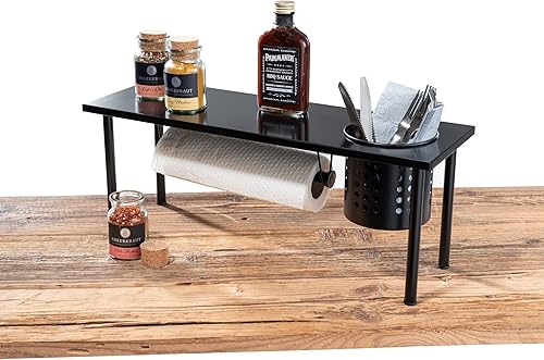 WENKO Étagère universelle avec porte-rouleau Blanco, étagère de cuisine, gain de place sur le plan de travail, support pour le rangement d'ustensiles de cuisine, acier inoxydable/MDF, 55 x 21 x 18 cm
