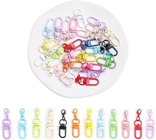 LWLWA Petit Mousqueton Porte Clé 40 Pièces Alliage Zinc Porte Clef Mousqueton, Couleur Pivotants pour Clés Crochet, Mousqueton Porte Clé aux Sacs Main, Clés, Artisanat Bricolage