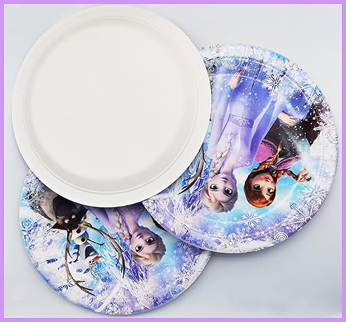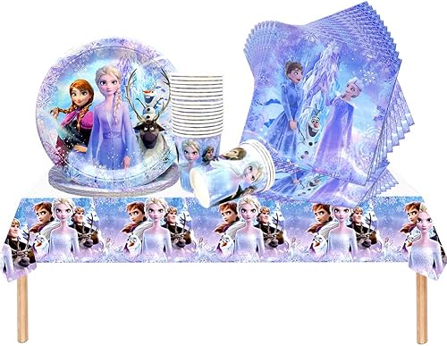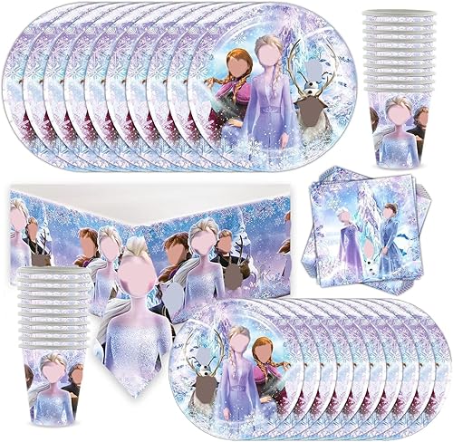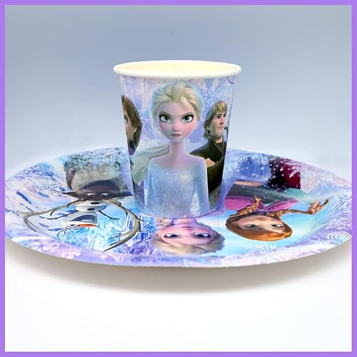 Shamoparty Vaisselle de fête ELSA 61Pièces, 20 Personnes Fête Reine des Neiges, Assiettes, Tasses, serviettes, Nappe, pour Décoration de Vaisselle de Fête D'anniversaire D'enfants