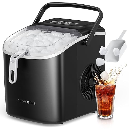 CROWNFUL Machine à Glaçon, 12kg en 24h, 9 Glaçons en 6 Minutes, Portable Machine a Glacons avec Capteur Infrarouge et Autonettoyant, Idéale pour Maison, Cuisine, Bureau, Bar, Fête