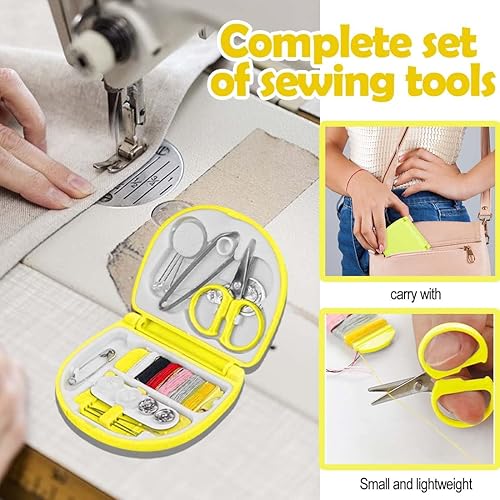 JUGUTA Kit De Couture De Base, Mini Kit De Couture De Voyage Pour Enfants, Kit De Couture Pratique Avec De Nombreux Accessoires De Couture Comprenant Bobine, Aiguille, Fil Et Ciseaux(Jaune)