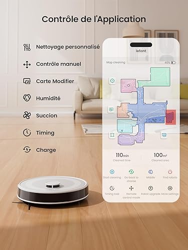 Lefant Aspirateur Robot, Robot Aspirateur 4500Pa Puissance d'Aspiration, Évitement Précis des Obstacles, Anti-Enchevêtrement Idéal pour Les Poils d'animaux, Cheveux et Sols Durs,Contrôle par App/Alexa