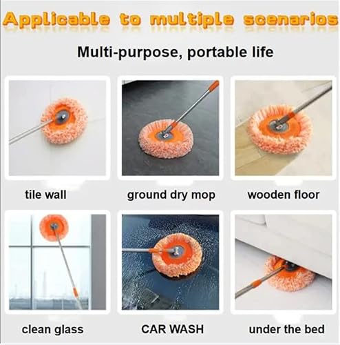 Vadrouille de nettoyage réglable rotative à 360°, vadrouille de nettoyage murale extensible avec têtes de rechange, serpillière rétractable multifonctionnelle à long manche de 71 à 190 cm