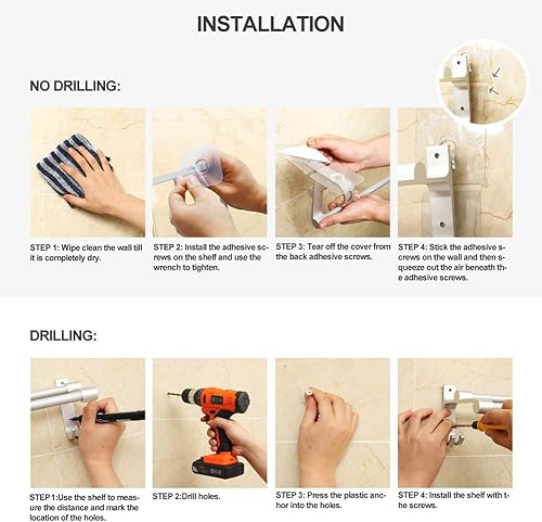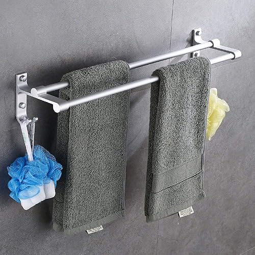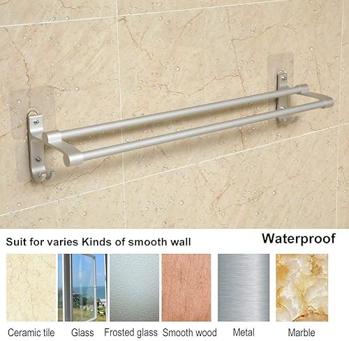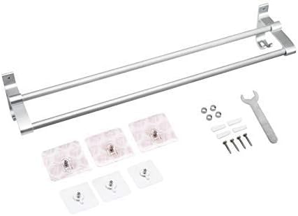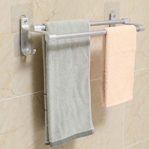 Hawsam Sans Perçage Porte-Serviettes à Double Barre de Salle de Bains - Aluminium Adhésif Barre de Serviette D'organisateur de Support avec 2 Crochets (40cm)