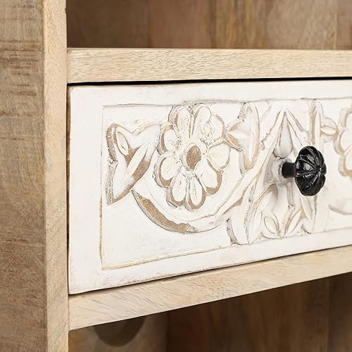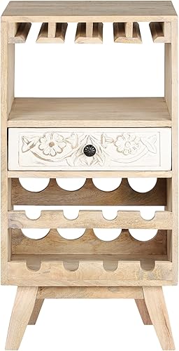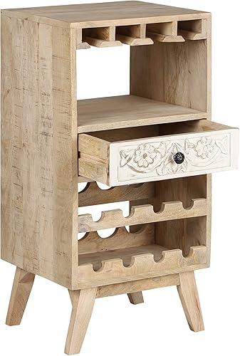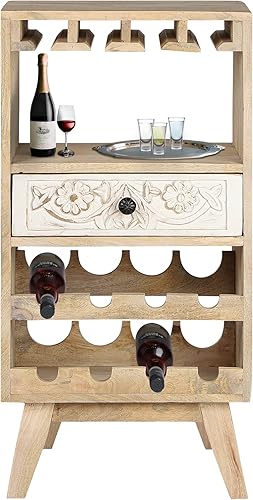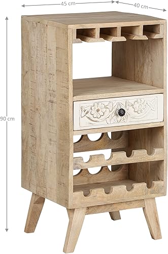WOMO-DESIGN Armoire à Vin Roma avec Porte-Bouteille, Étagère et Tiroir, 45x90x40 cm, Unique, Fait Main, Vintage, Casier à Vin Range 8 Bouteilles, Support à Vin, Buffet Meuble de Bar en Bois Tropical