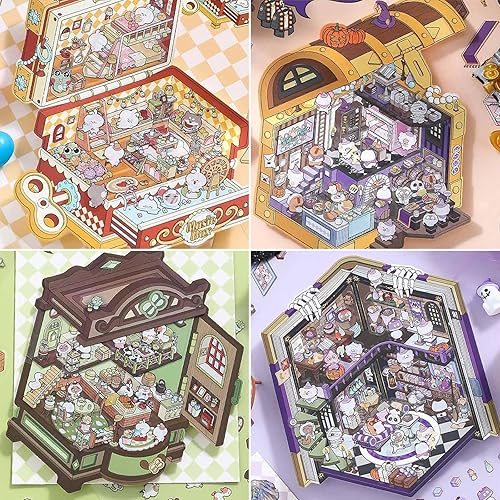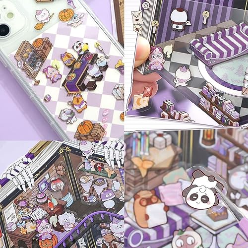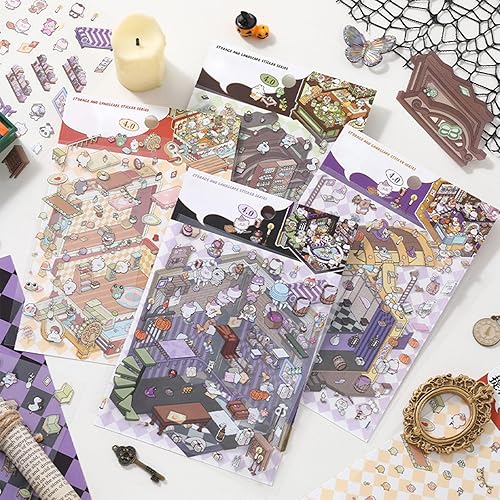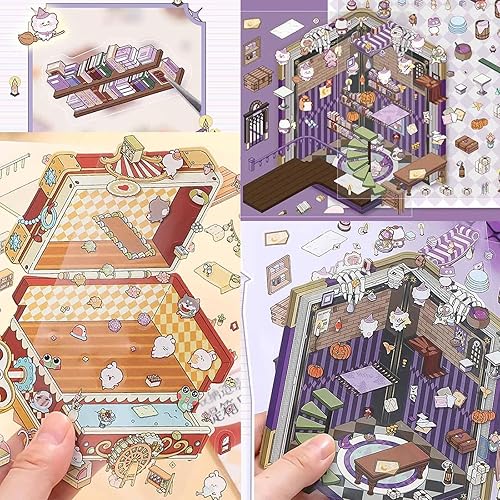 Yamobi Lot de 4 autocollants 3D, pour maison, 8 scènes avec fond et pincette, autocollants décoratifs pour scrapbooking