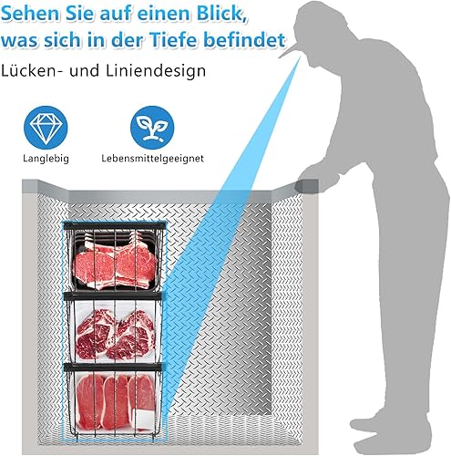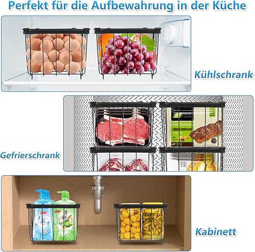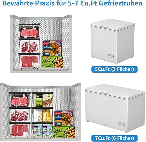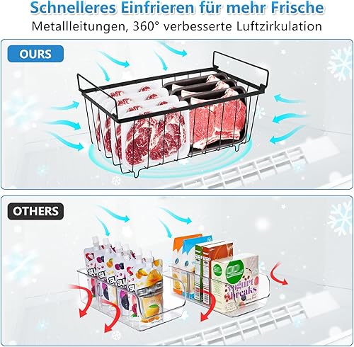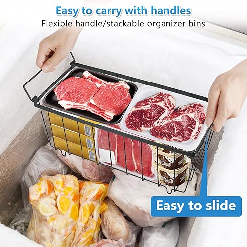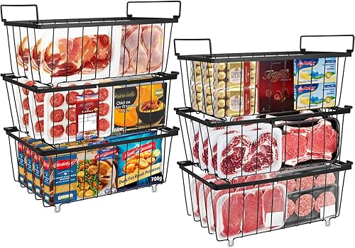 UHAPEER Lot de 6 paniers de congélation empilables avec poignées, fil d'acier de 2,8 mm, fond antidérapant et congélation rapide, pour réfrigérateur Cu.Ft 5-7 (37 x 18 x 14,5 cm)