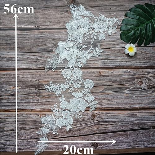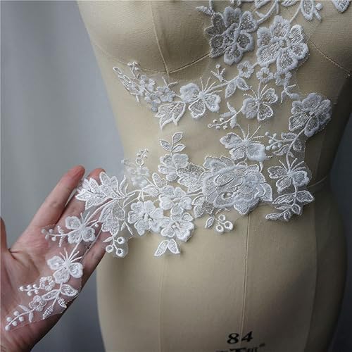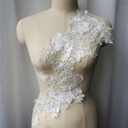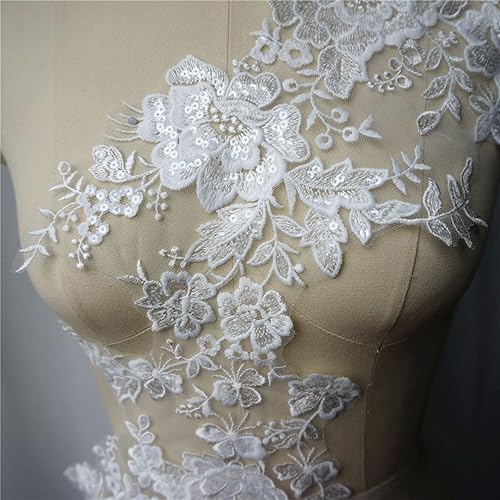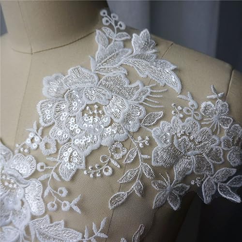 FISIDI Appliques en Dentelle, Broderie Florale, Appliques de Robe de mariée Blanche Tissu en Dentelle Fleur Col à Sequins Maille brodée Coudre sur des Patchs for la décoration Robe DIY