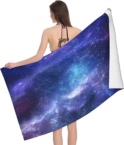 Leichong Serviette de Plage Galaxie Astronomie Univers, 3D Simple Grande Serviette de Bain Microfibre, Drap de Plage Séchage Rapide e Anti Sable pour Piscine Voyage Couverture, 100x200 cm