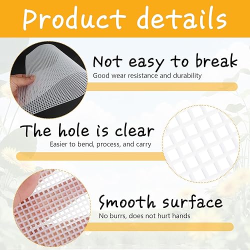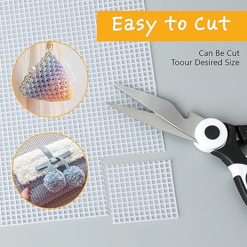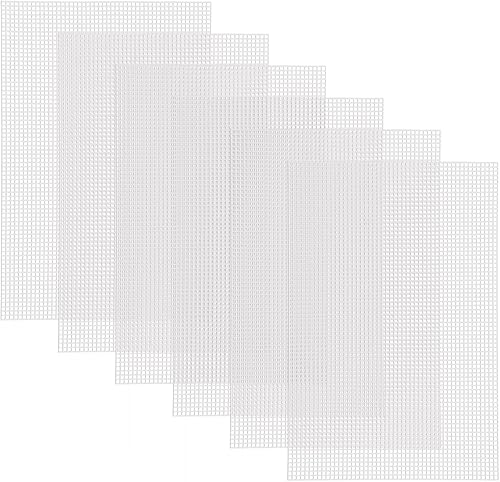 Feuilles de Toile en Maille Plastique,6 Pièces Canevas Plastique Broderie en Maille Blanc Point de Croix Toile a Broder pour Travaux Manuels, Projets de Tricot et de Crochet