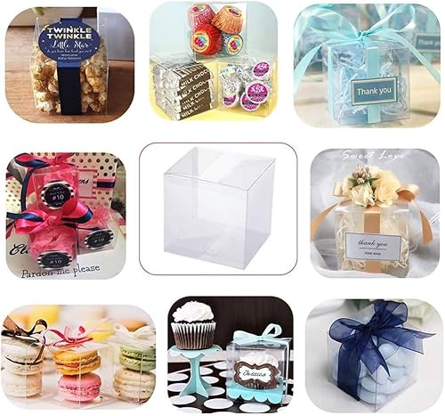 BENECREAT 120 Pcs Boîte de Faveur en Plastique Transparent 4x4x4 cm Boîte D'Emballage Cadeau pour Bonbons Chocolat et Dessert, Gâteries de Fête de Mariage, Emballage Cadeau