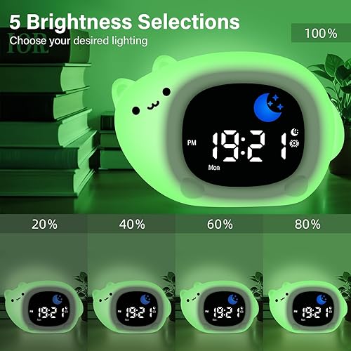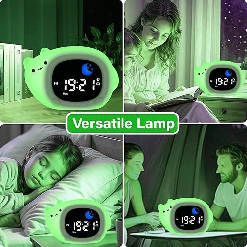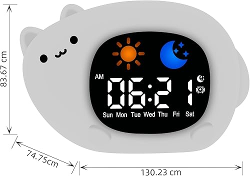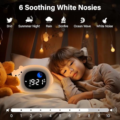 Thorder Horloge d'entraînement au sommeil pour tout-petits, veilleuse anti-chute pour enfants, machine sonore, réveil portable rechargeable pour garçons, filles pour anniversaires, Noël et fête des