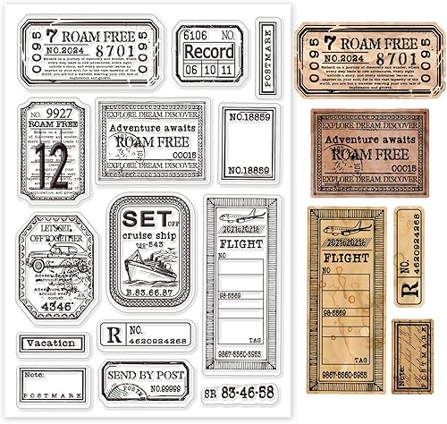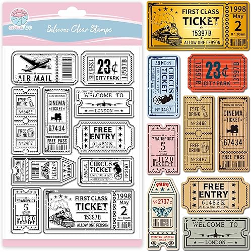 GLOBLELAND Tampon Transparent en Silicone avec Motif de Billet Vintage pour le Scrapbooking les Tickets de Train et D'Avion Étiquette et Cadre pour la Fabrication de Cartes L'Embossage