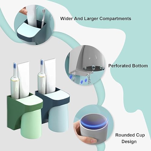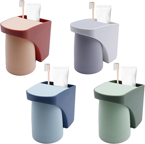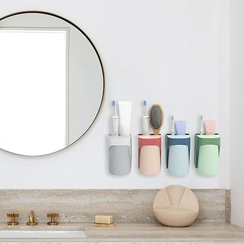 Druuzyl Porte-Brosses à Dents 4 Pièces Support de Rangement pour Salle de Bain, Porte-Gobelet avec Ventouse Organisateur pour Dentifrice et Brosse à Dents Lot de 4 Supports Murales
