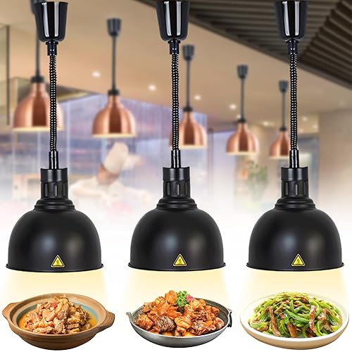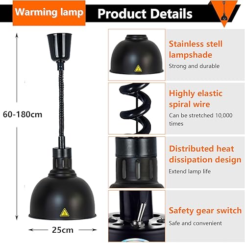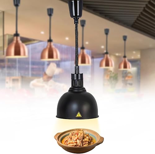 Lampe Chauffante de Cuisine Professionnelle, 250W Lampe Chauffe Plat Buffet Suspendue, Lampe de Chauffante Commercial pour Hôtels, Buffets et Pizza, Hauteur Réglable 60-180cm