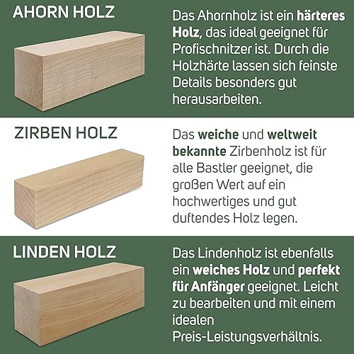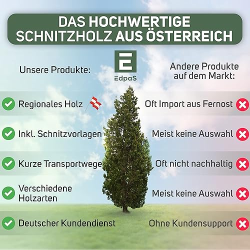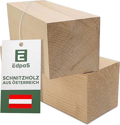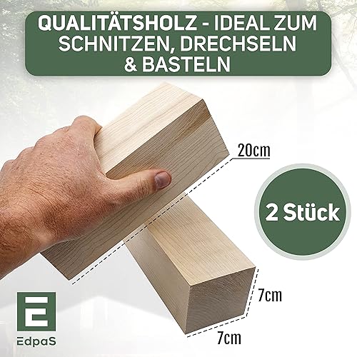 Edpas Lot de 2 blocs de bois de sculpture - 20 x 7 x 7 cm - Grands blocs de bois de sculpture - Bois naturel à sculpter pour enfants - Bois de tournage en érable
