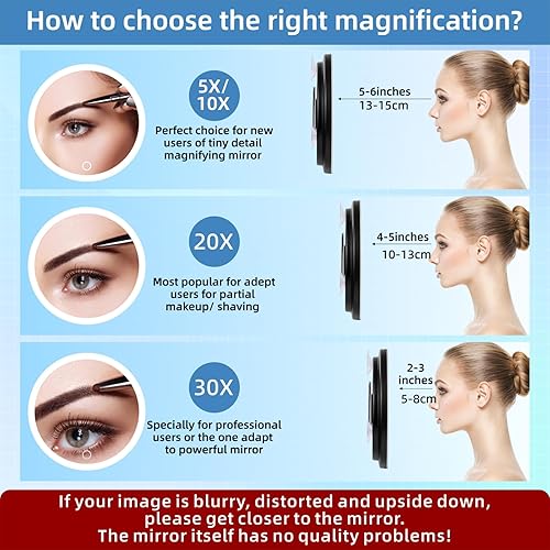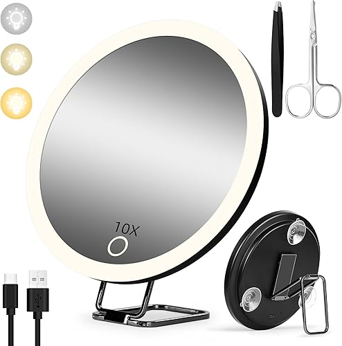 Suupvaor Miroir grossissant avec lumière avec support de table, miroir grossissant 10x noir, grande taille