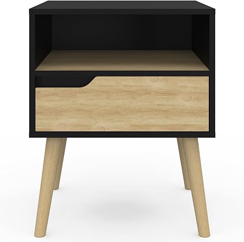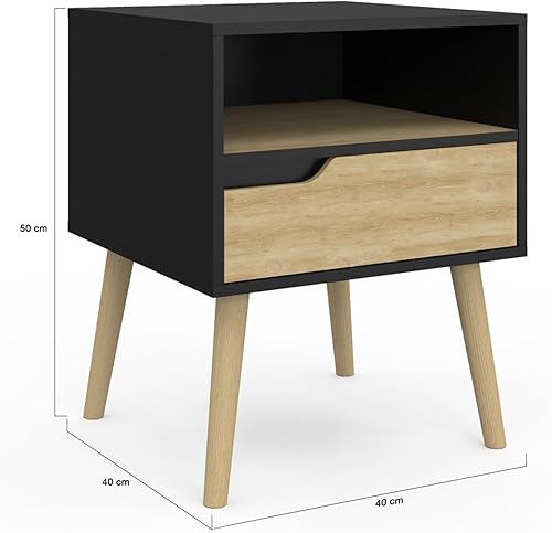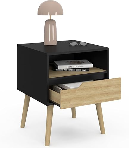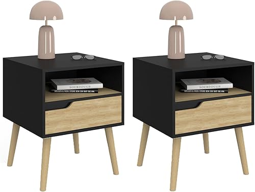IDMarket - Lot de 2 Tables de Chevet Helsinki scandinaves 1 tiroir avec Niche Noir et Effet hêtre