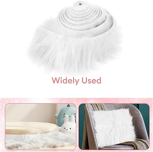 Tissu Fabric Furry Fausse Fourrure Bandes Prédécoupées,Tissu en Fausse Fourrure Duveteuse pour Loisirs Créatifs,Patch en Peluche Synthétique à Poils Longs pour Couture et Bricolage (Blanc,5cmx1,5m)