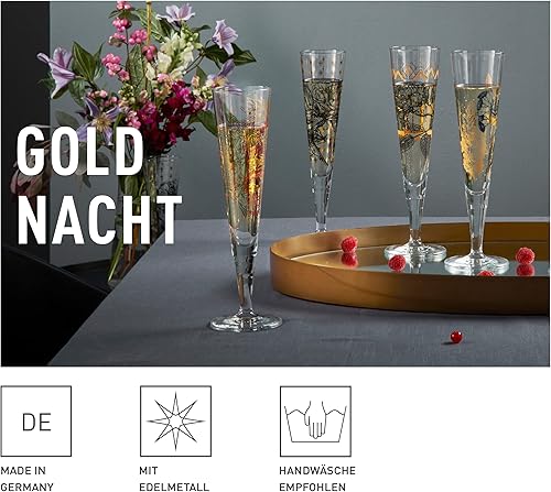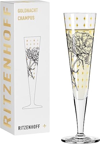Ritzenhoff 1071030 Flûte à champagne 200 ml - Série Goldnacht n° 30 - Motif jardin de roses avec or véritable - Made in Germany