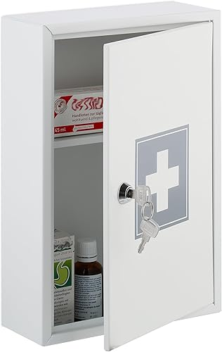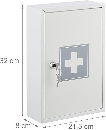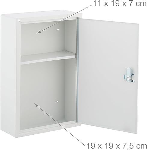 Relaxdays Armoire à Pharmacie, verrouillable, 2 Niveaux, Acier, HxLxP: 32x21,5x8 cm, accrocher, Blanc - Gris